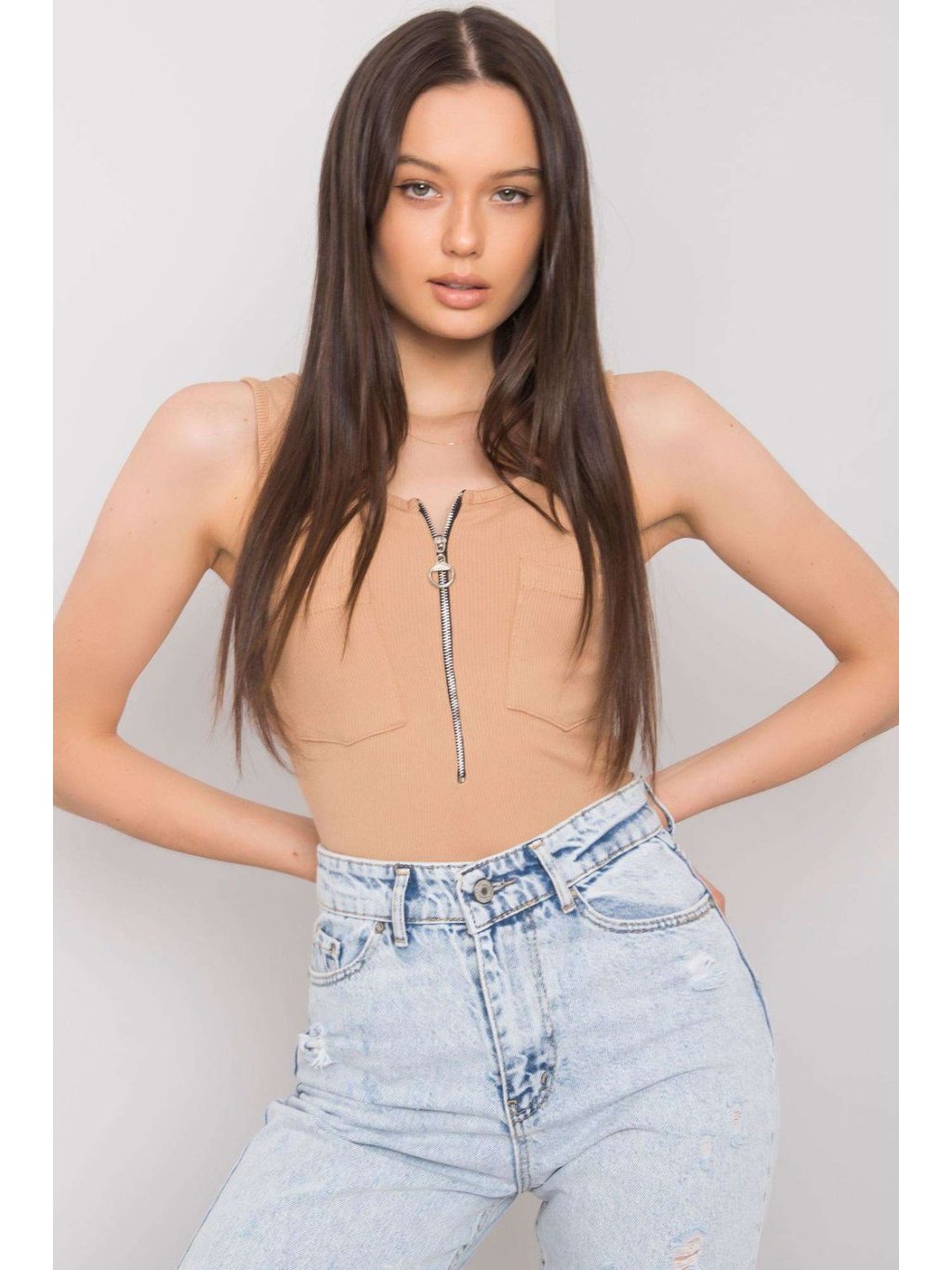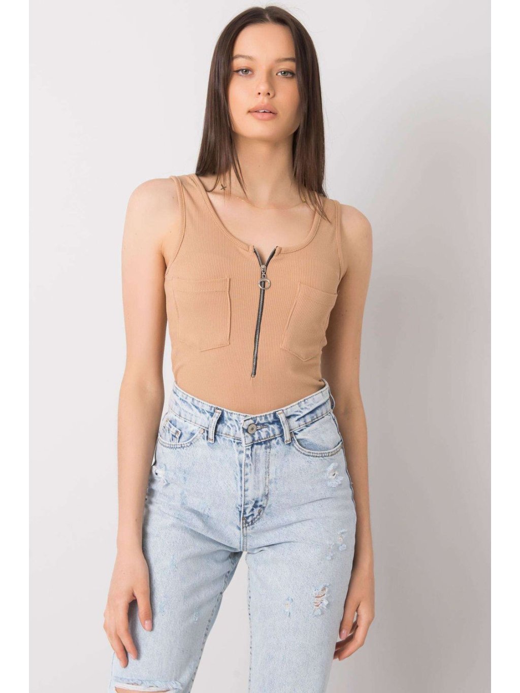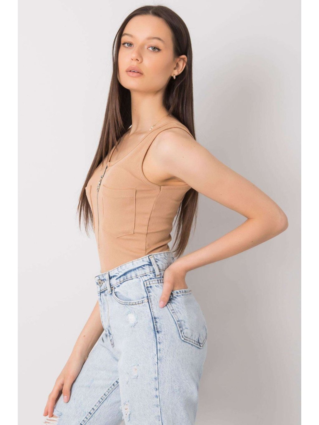 Tričko s kulatým výstřihem, ramínka. Zapínání na zip vpředu a ozdobné kapsy. Ideální na léto.
