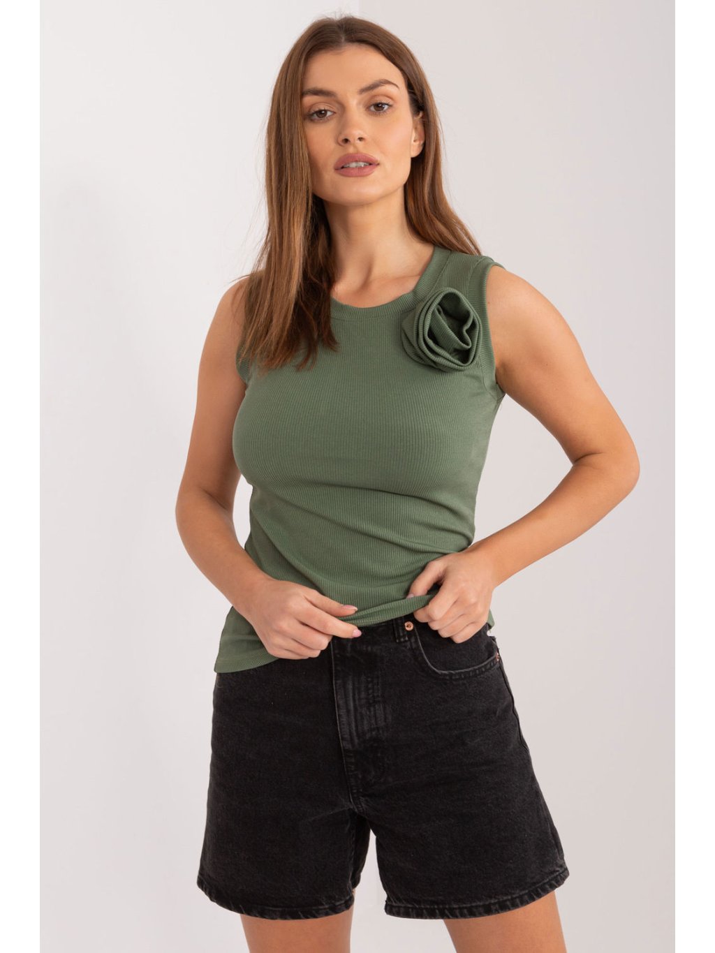 Toto ležérní tričko bez rukávů je skutečným příkladem stylu a pohodlí. Díky svému elegantnímu designu je vhodné jak na pohodové procházky, tak na setkání s přáteli. Na přední straně má jemnou látkovou květinu, která mu dodává šarm a decentnost. Tričko je vyrobeno převážně z polyesteru, což zaručuje jeho odolnost a snadné čištění, takže se z něj můžete těšit po mnoho sezón. Žebrovaný materiál mu dodává další efekt a zároveň podtrhuje jeho jednoduchost a eleganci. Díky standardní délce se hodí pro různé typy postav a zajišťuje pohodlné a ležérní nošení. Ať už se jedná o jakoukoli příležitost, tato košile bez rukávů bude dokonalým doplňkem vašeho šatníku a dodá mu punc ženského šarmu a stylu.