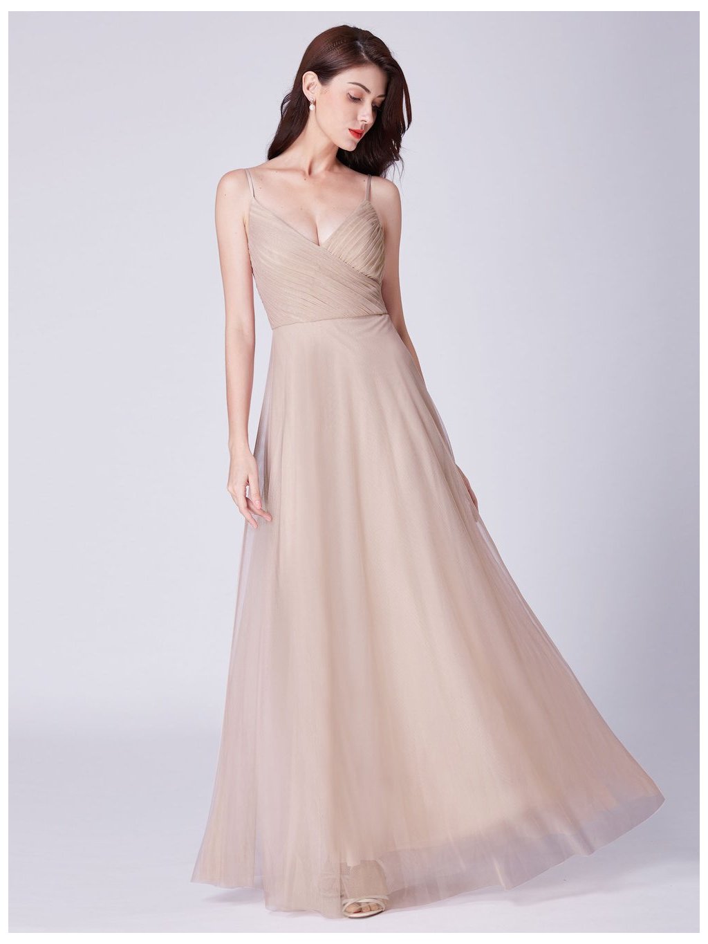 Luxusní krémové šaty Ever Pretty. Šaty mají špagetová ramínka, která jsou nastavitelná. Mají velký výstřih. Na zádech skrytý zip. Jsou dostatečně vyztužené, lze vzít bez podprsenky.