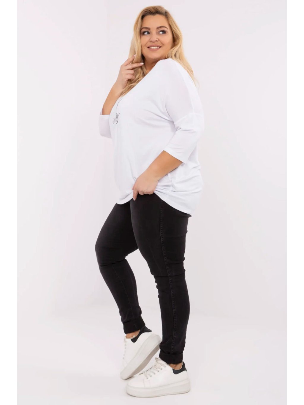 Tento každodenní volný styl košile je ideální volbou pro ženy, které ocení pohodlí a módní detaily. Vyrobený z měkké, elastické látky z viskózy a elastanu, poskytuje pohodlí a skvělé přizpůsobení postavě. Standardní délka a klasický kulatý výstřih dělají z košile skvělý doplněk k džínám, legínám nebo sukni. Ozdobné nápisy s aplikací z flitrů jí dodávají výrazný charakter a trochu lesku. Model bez zapínání, pohodlný a snadno se obléká.