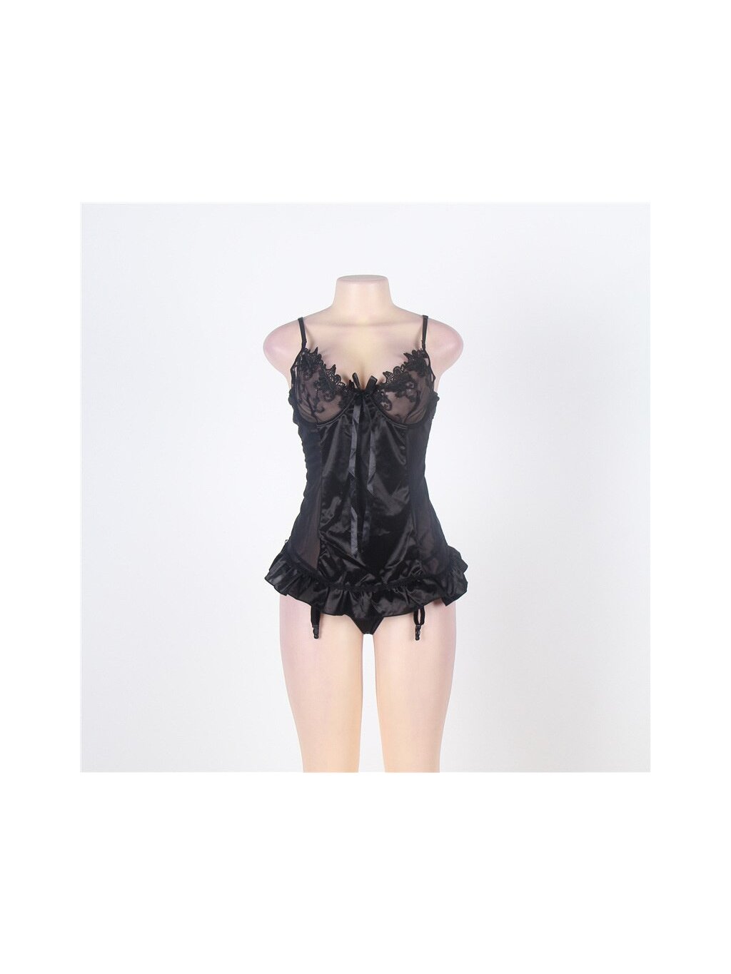 Dámská sexy košilka. Černá, krajkovaná na prsou, na ramínka, šněrování na zádech.
